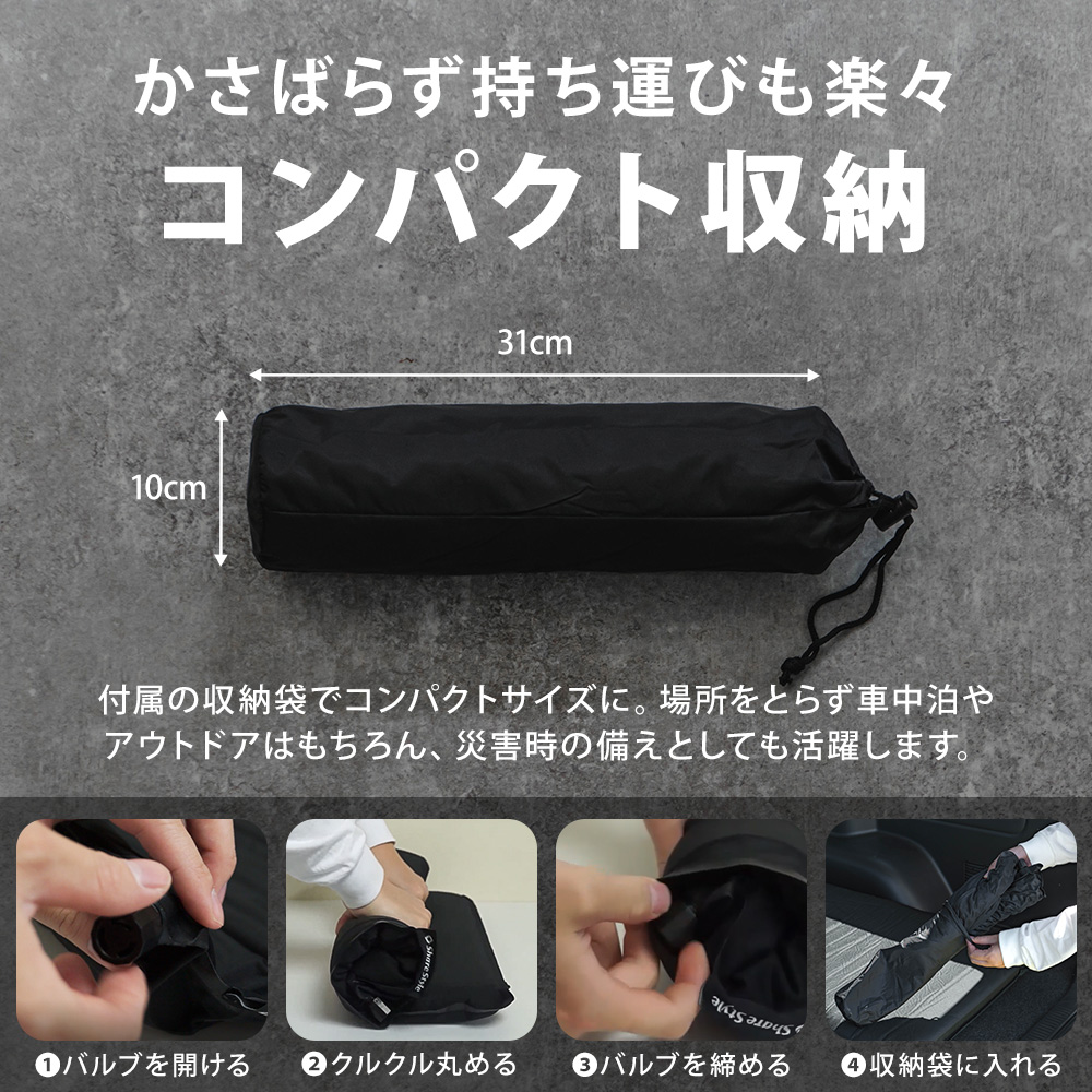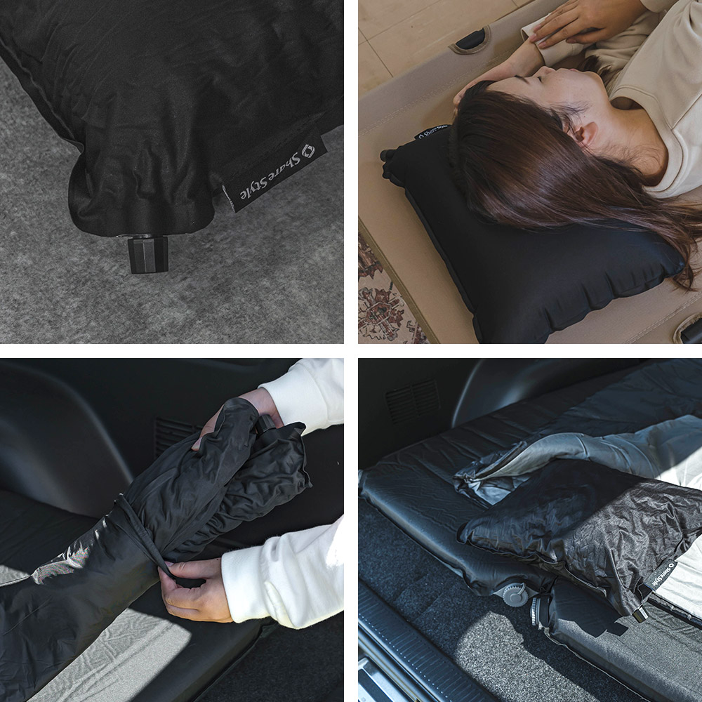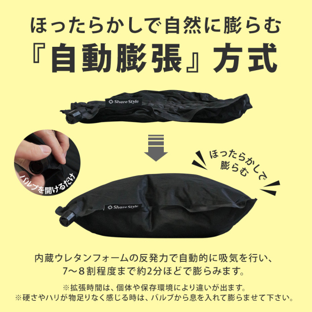 車中泊に大活躍な自己膨張型インフレータブルピロー [ 材質 ] 【本体】ポリエステル・ポリウレタンスポンジ 【バルブ】ABS 【収納袋】70デニールナイロン [ セット内容 ] 本体1p+収納袋 [ 耐荷重 ] 20kg ■汎用