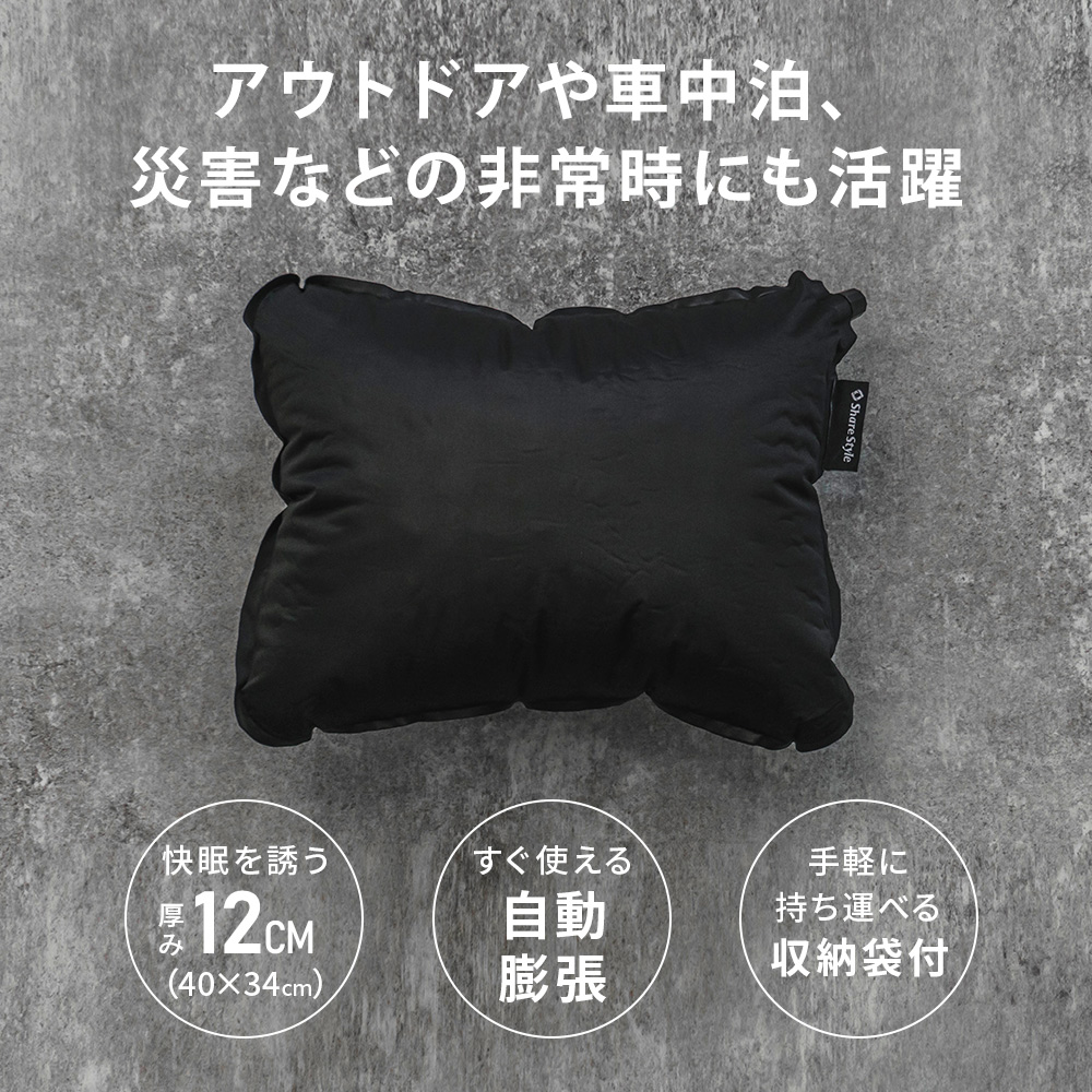 このインフレータブルピローは、自己膨張式で簡単に使用できる便利なアイテムです。軽量でコンパクトに収納可能なため、旅行やアウトドア、車中泊など様々なシーンで活躍します。災害時の防災用品としても最適です。ブラックのシンプルなデザインがどんな環境にもマッチし、快適な眠りをサポートします。収納袋付きで持ち運びも簡単です。快眠を求める方におすすめの一品です。