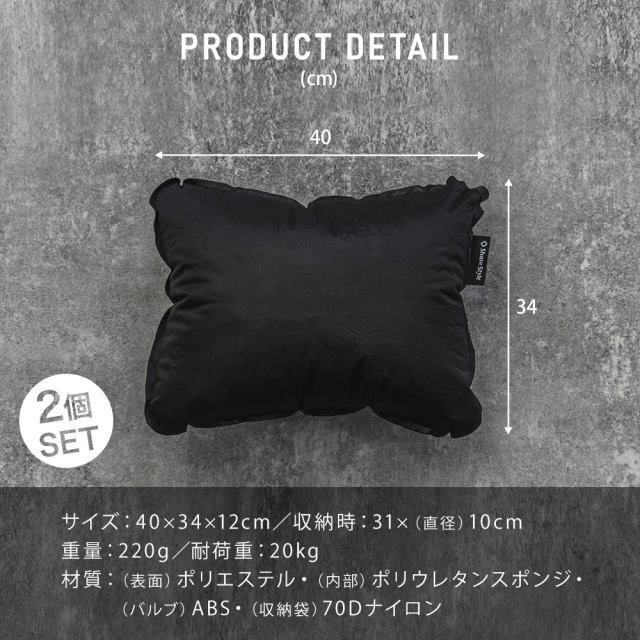 | 製品名: | インフレータブルピロー 2個セット 軽量 ブラック 自動膨張 車中泊マット |