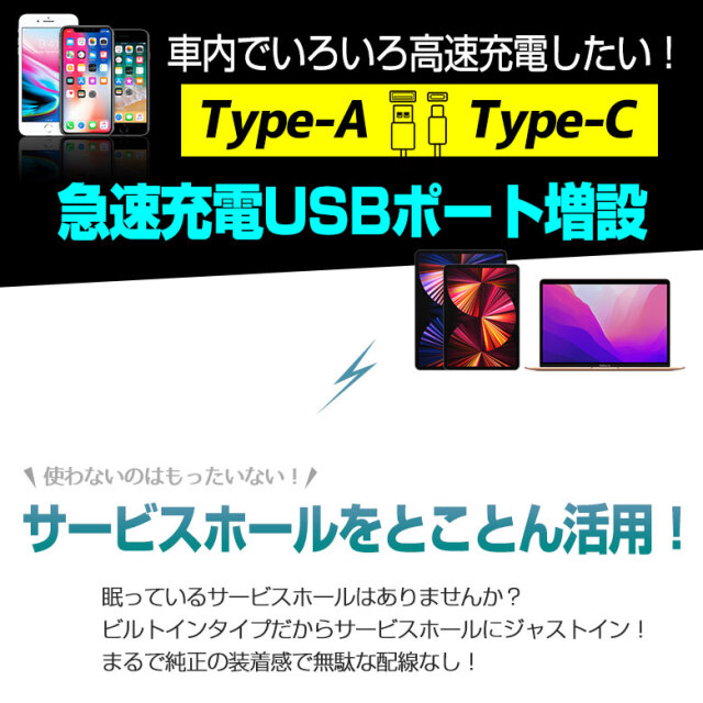 | 製品名: | トヨタ ダイハツ 車専用 3ポートUSB増設 QC3.0 PD3.0 対応 急速充電ポートビルトイン スイッチパネル サービスホール |
