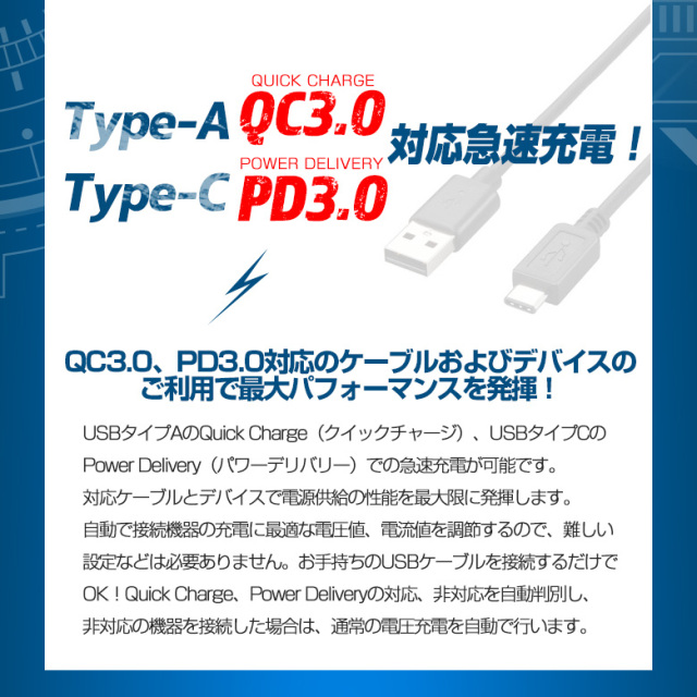 | 3(USB Type-A×2、USB Type-C×1) | Quick Charge 3.0 / Power Delivery 3.0 |