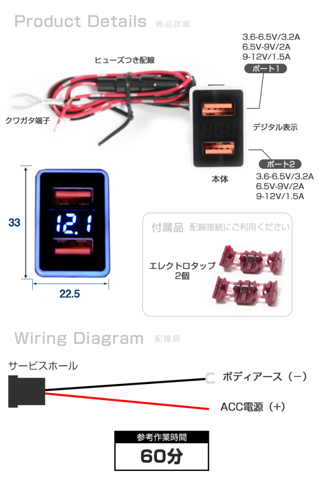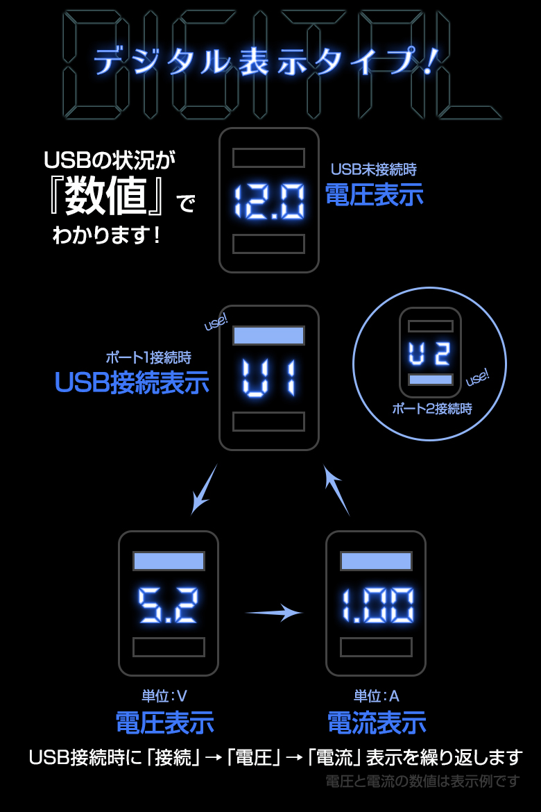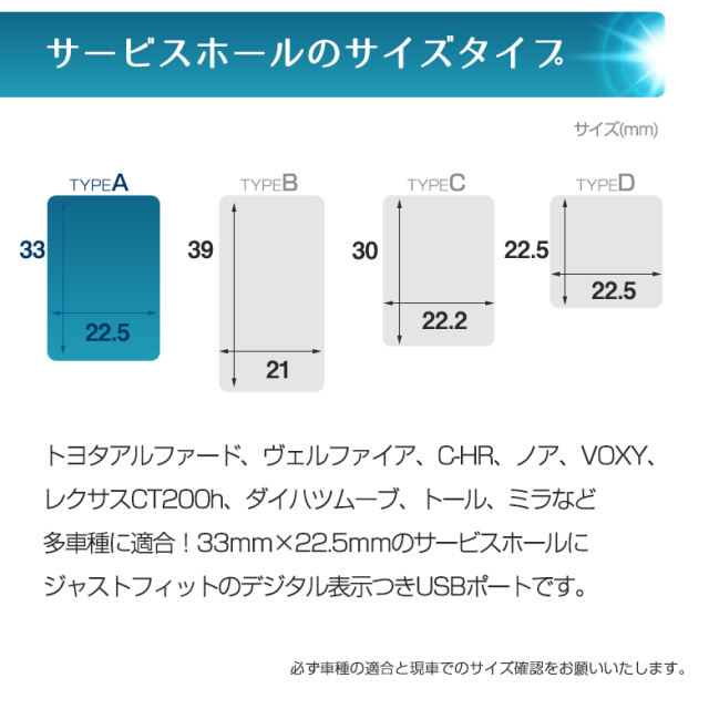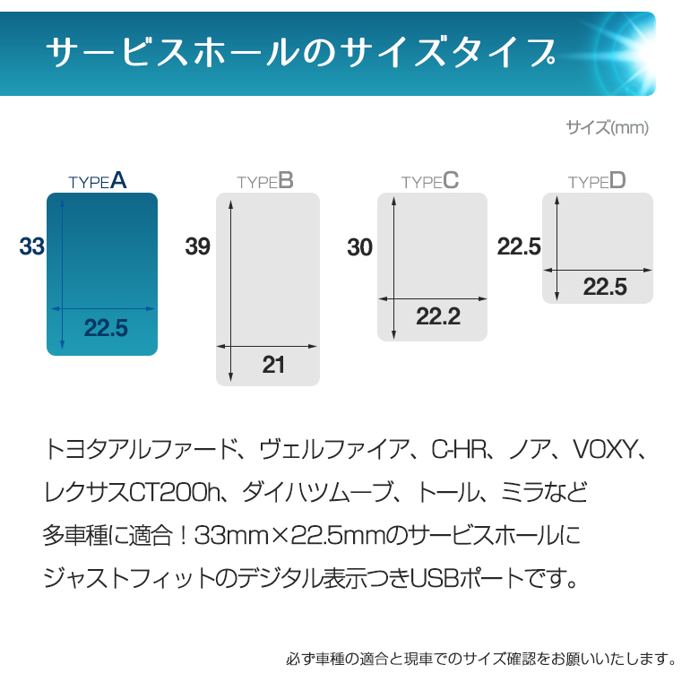 | 製品名: | トヨタ ダイハツ 車専用 デジタル 2ポートUSB増設 QC3.0対応 急速充電ポートビルトイン ディスプレイタイプ スイッチパネル サービスホール |