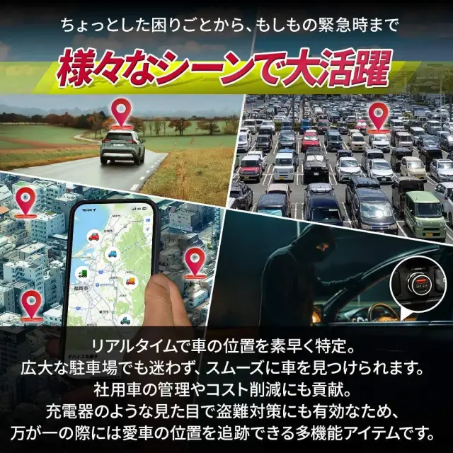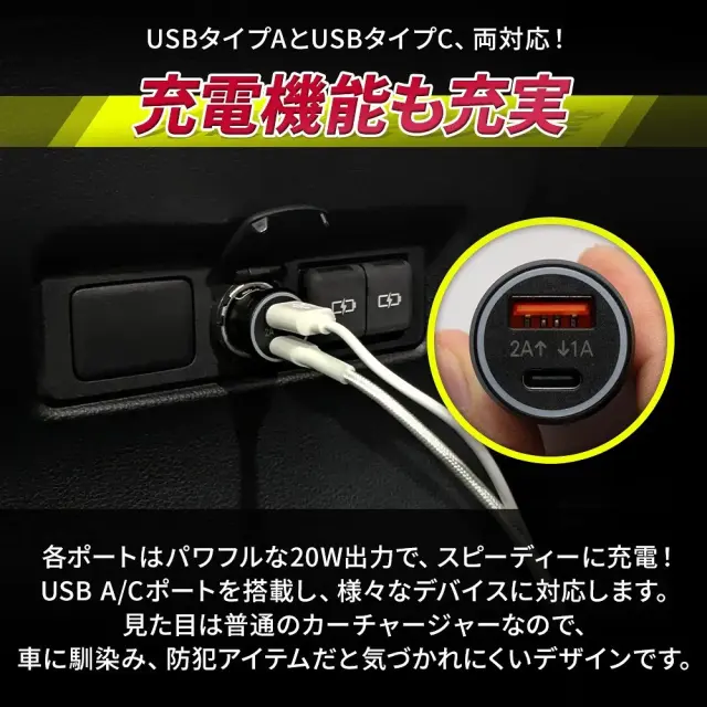 iOS連携ロケーターチャージャーは、車の位置を簡単に特定できる優れたデバイスです。広大な駐車場でも迷わずに車を見つけることができ、盗難対策としても有効です。USB-AとUSB-Cの2ポートを備え、急速充電が可能です。簡単に取り付けられ、日常の安心をサポートします。