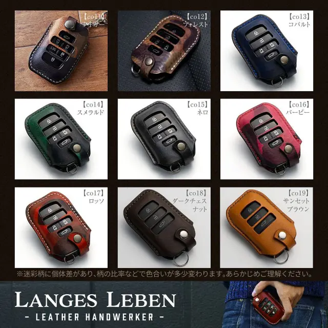 トヨタ 汎用 ランゲスレーベン [ 材質 ] 本革 [ カラー ] ボルドー、ダークブラウン、ブラウン、ワインブラウン、ミッドブルー、クラシックグリーン、 パープル、ブラック、テラコッタ、迷彩タイガー、迷彩フォレスト、迷彩コバルト、迷彩スメラルド、迷彩ネロ、迷彩バービー、迷彩ロッソ、ダークチェスナット、サンセットブラウン [ サイズ ] 2ホール/3ホール/4ホール形状違い/4ホール ■適合車種 トヨタ汎用