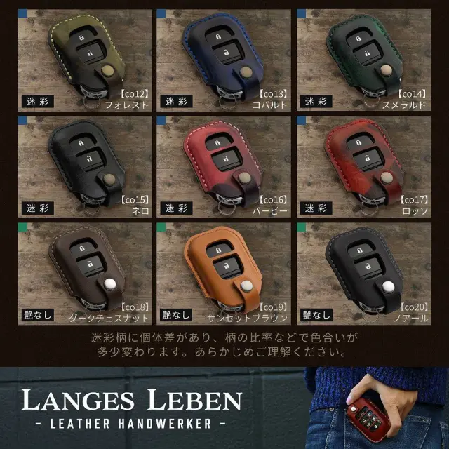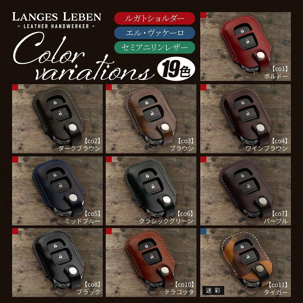ホンダ車専用の「ランゲスレーベン」レザーキーカバーは、アコードやCR-V、オデッセイなど多様な車種に対応しています。高品質な本革を使用し、2ボタン/3ボタン/4ボタンのキーにフィットする2ホール/3ホールのデザインが特徴です。選べるセミオーダーで、カラーやステッチカラーをカスタマイズ可能。スタイリッシュなアクセサリーとして鍵を保護し、車の個性を引き立てます。