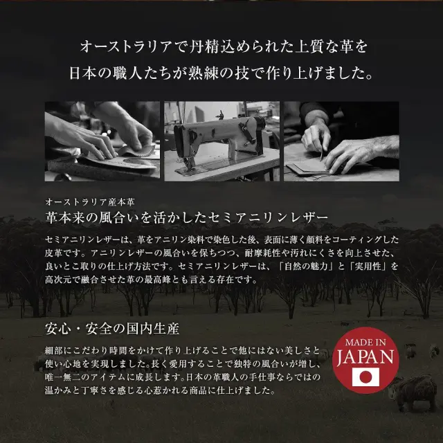 | フランス産原皮(迷彩タイプ)/オーストラリア産原皮(無地タイプ) |