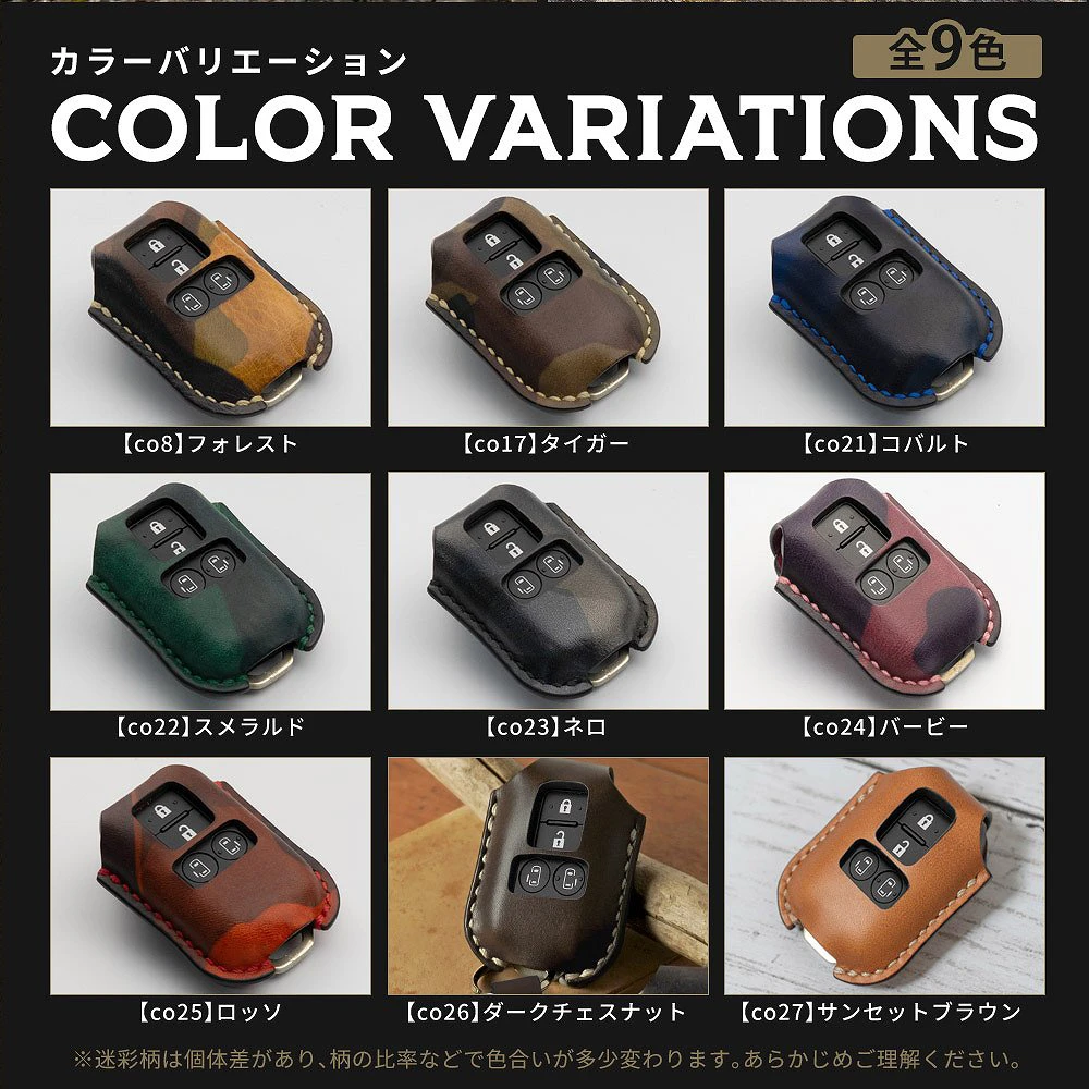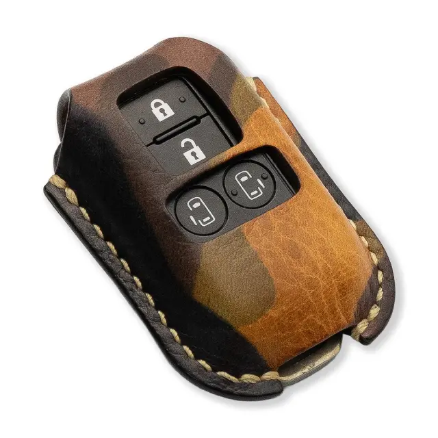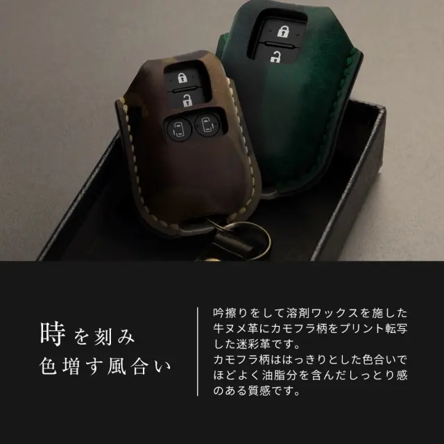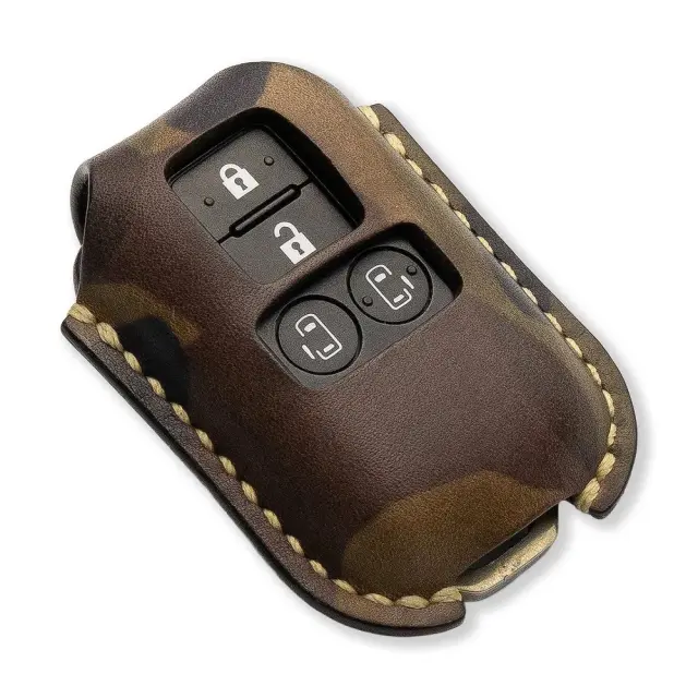 スズキ車汎用 1ホール2ボタン 2ホール 4ボタン パワースライドドア車対応のスマートキーカバーです。素材には上質な本革を採用。 フランス産の原皮を使用した迷彩柄でイタリアの職人たちが一つ一つ丁寧に制作。 繁忙期は製作期間が伸びる場合があります。受注製作後はキャンセル・返品は受け付けません。 ペーシア カスタム ギア ソリオ バンディット ワゴンR など