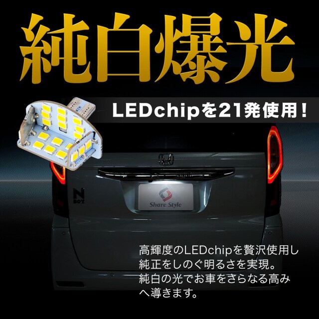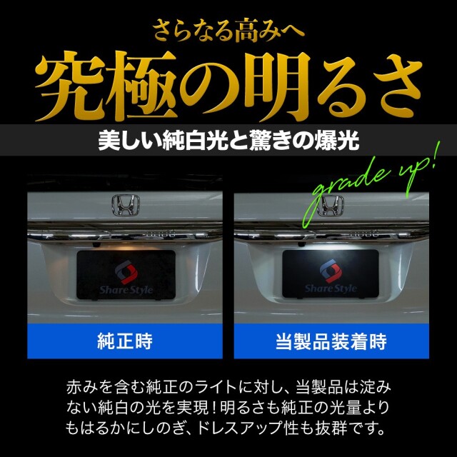 専用設計のライセンスランプで今までにない明るさを N-BOX N-BOXカスタム JF3 JF4 専用 ライセンスランプです。 [ 材質 ] LED(21チップ) [ カラー ] ホワイト [ セット内容 ] 1p+取扱説明書 [ ルーメン数/色温度 ] 約260lm(片側)/約6000K ■適合車種 N-BOX N-BOXカスタム JF3 JF4 H29.8~