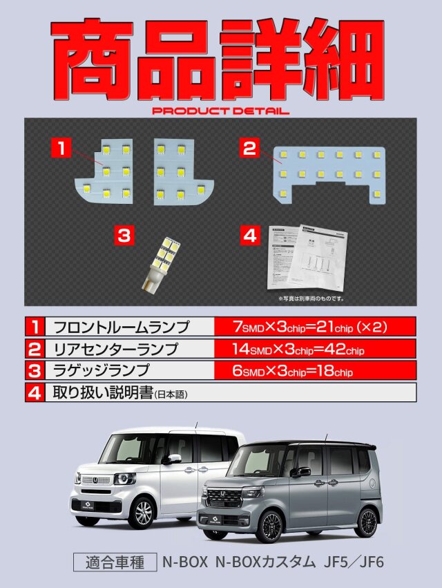 | 製品名: | N-BOX N-BOXカスタム JF5 JF6 LEDルームランプ セット |