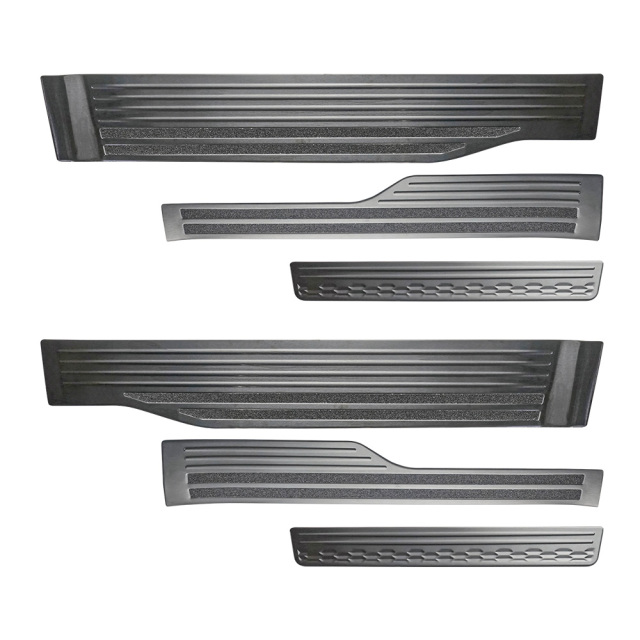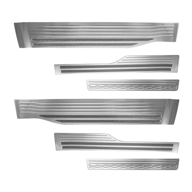 傷が付きやすいスカッフ部分を保護! [商品概要] シルバー/ブラック [材質] ステンレス(ヘアライン加工) [セット内容] 6p+取扱説明書 [装着方法] 裏面強力テープで簡単装着 ■適合車種 ステップワゴン RP6 RP7 RP8 R4.5~