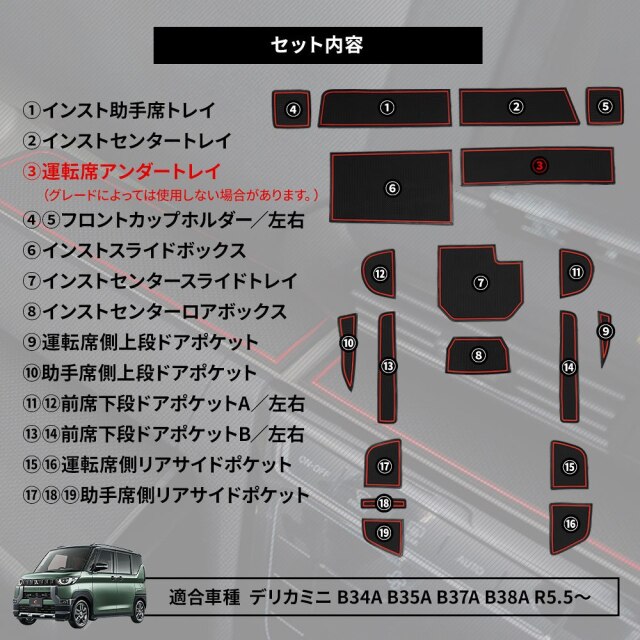 | 製品名: | 【デリカミニ専用】ラバーマット 19点セット|防水・滑り止め ゴムマット インテリア保護 アクセサリー 内装カスタム D5 |