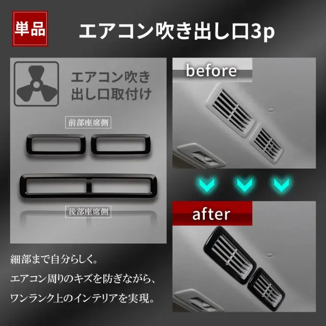 | ステアリング 2p/1列目ウィンドウスイッチ 2p/1列目インナードア 2p/2列目インナードア 2p/エアコン吹き出し口 3p/フロントインパネセット 6p/全部セット 11p |