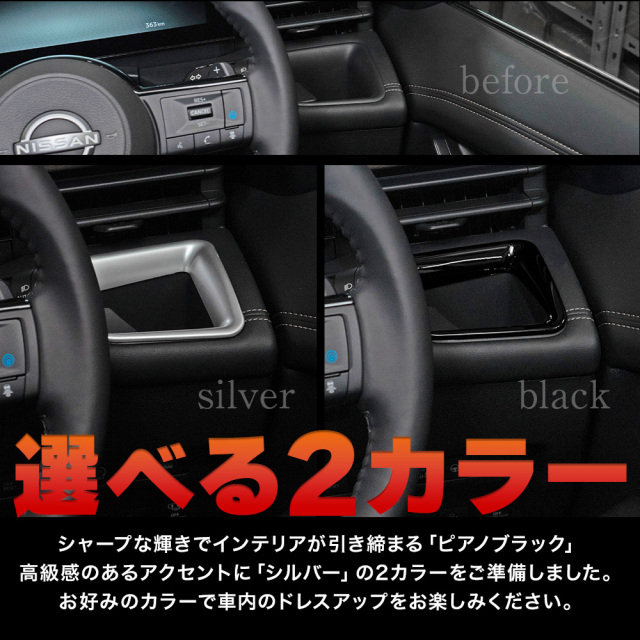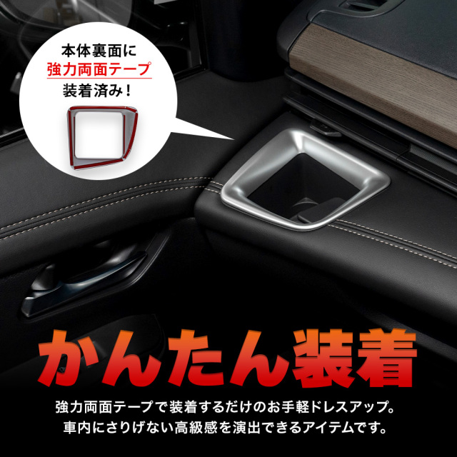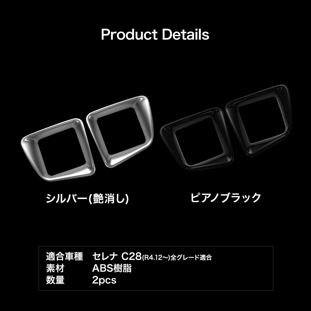 簡単取り付けでドレスアップセレナ C28専用フロントドリンクホルダーカバーです。 [ 材質 ] ABS [ カラー ] シルバー(艶消し)/ピアノブラック [ セット内容 ] 2P+取扱説明書 [ 装着方法 ] 裏面強力テープで簡単装着 ■適合車種 セレナ C28 (R4.12~)全グレード適合