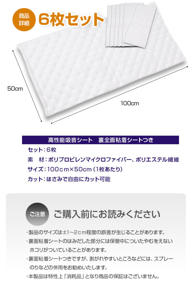 | 製品名: | 吸音シート 6枚分セット(1枚サイズ100cm×50cm)×6枚分 |
