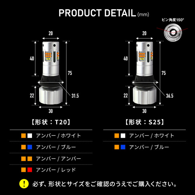| 2pcs | T20(ピンチ部違いのT20にも対応) S25(ピン角度150度) ※商品側の配線の太さは0.3スケアです |