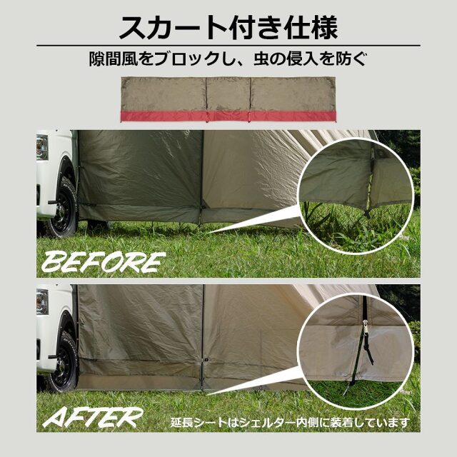 | 製品名: | 延長シート 2P カーサイド タープ ワンタッチ シェルター 専用 左右セット 車用 簡単取り付け 耐水圧 キャンプ スカート 防災 テント 車内泊 |