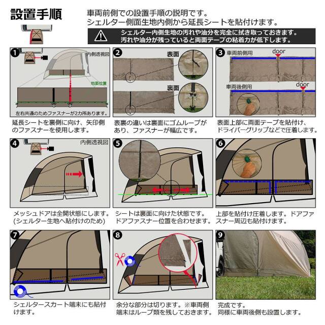 | テント用両面テープで簡単取り付け |