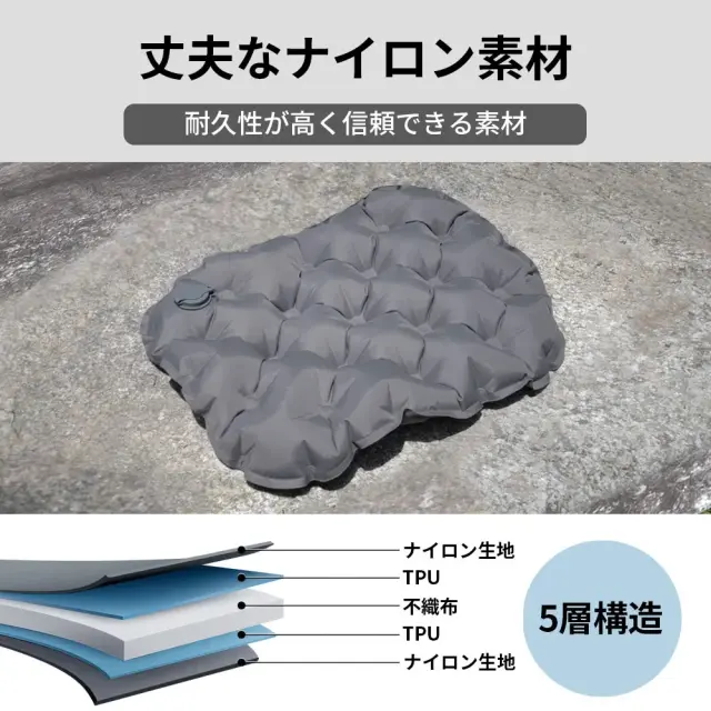 キャンプや登山、スポーツ観戦など、硬い地面や冷たいベンチにお困りではありませんか?このポータブルエアークッションは、空気を吹き込むだけでクッションが完成。耐荷重100kgのタフな設計で、お尻への負担を大幅に軽減します。重さはわずか90gと超軽量。付属の収納袋に入れれば手のひらサイズで持ち運びも楽々です。アウトドアからオフィス、旅行まで、場所を選ばず「座る」を快適に変える必須アイテムです。