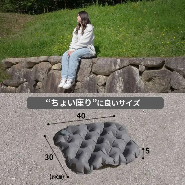 製品名: ポータブル エアークッション 40×30cm 収納袋付き 耐荷重100kg 軽量 コンパクト 折りたたみ 座布団 アウトドア キャンプ 登山 スポーツ観戦