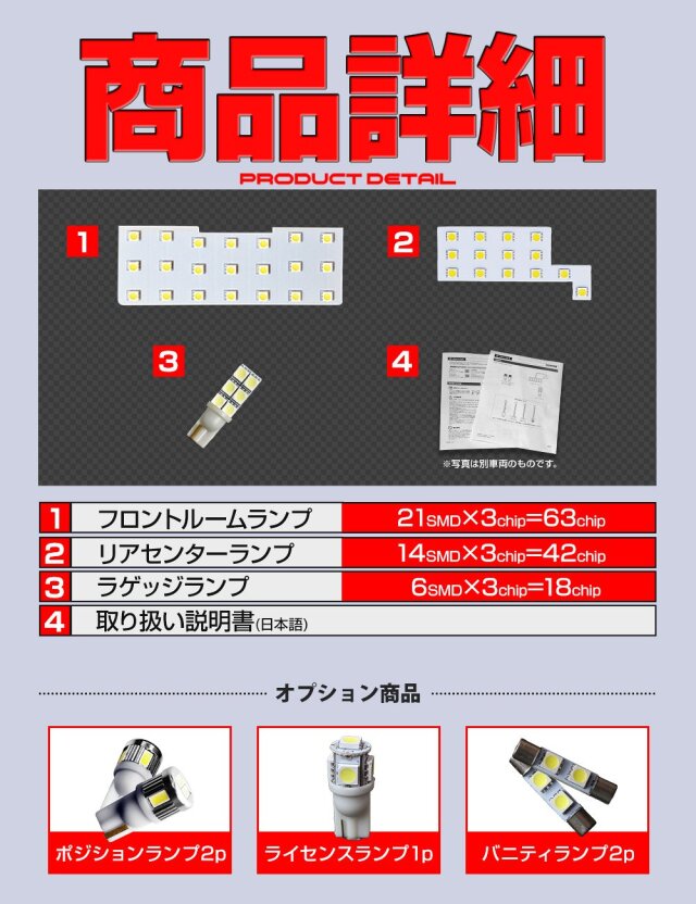| ラゲッジランプ | SMD LED 3chip 6個 chip数 18chip |