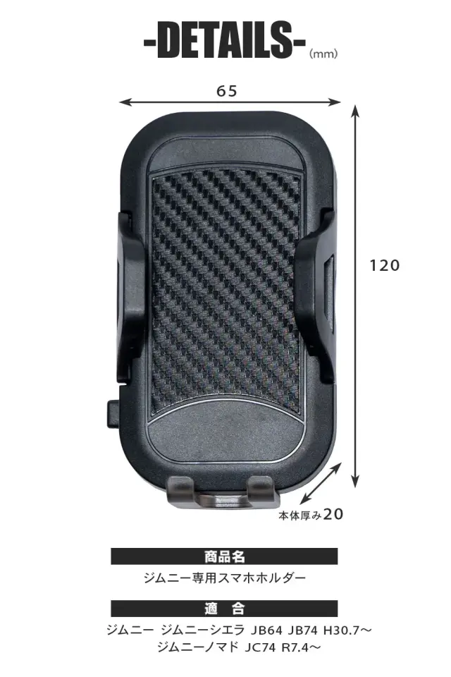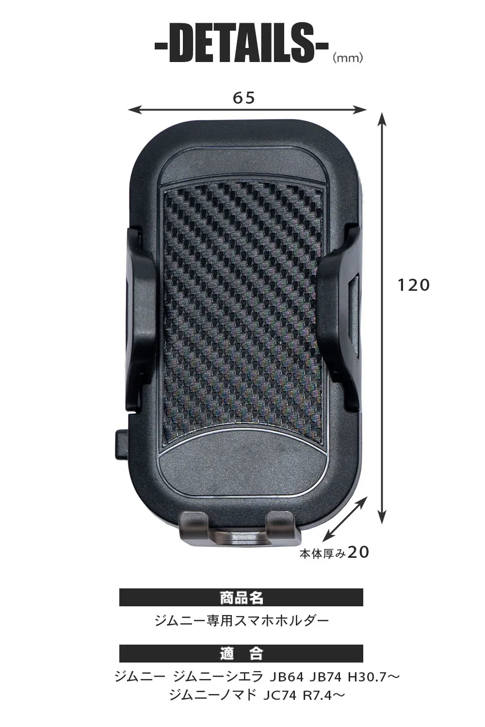ジムニー、ジムニーシエラ、ジムニーノマドのために設計された専用スマートフォンホルダーです。車内の雰囲気に自然に溶け込むカーボン調デザインを採用し、純正インテリアとの一体感を高めます。ダミーボルトと六角穴を活用した専用設計により、確かな固定力と安定感を実現。360度回転機能で視認性の高い角度に細かく調整でき、ナビ確認や操作もスムーズに行えます。走行中の振動でもスマートフォンをしっかりホールドし、快適で安心なドライブをサポートする、デザイン性と実用性を兼ね備えた車載ホルダーです。