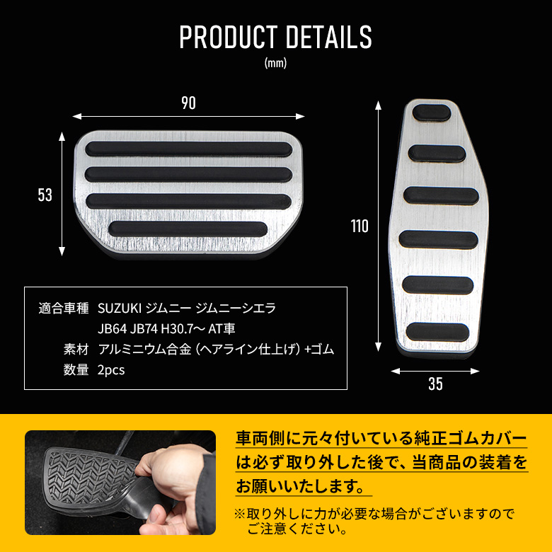 | 製品名: | 【まとめ割引対象商品】ジムニー ジムニーシエラ JB64 JB74 AT車 専用 アルミペダル 2p |