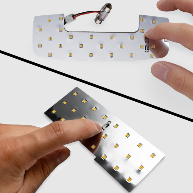 ホワイトとゴールドの2色に切り替え可能且つ、3段階の明るさ調整機能付きLEDルームランプです。鏡面加工による高光量で車内を鮮やかに照らし、スタイリッシュな空間を演出します。また、車種専用設計により、ルームランプユニットに無駄なくフィット!取り付けは簡単で、純正品を超える高品質な商品です。