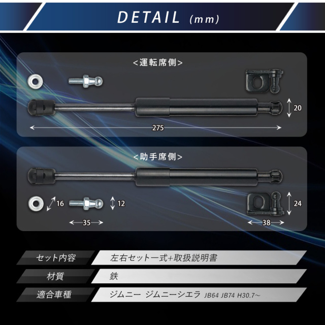 | 製品名: | ジムニー ジムニーシエラ ジムニーノマド JB64 JB74 JC74 専用 ボンネットダンパー 一式 |