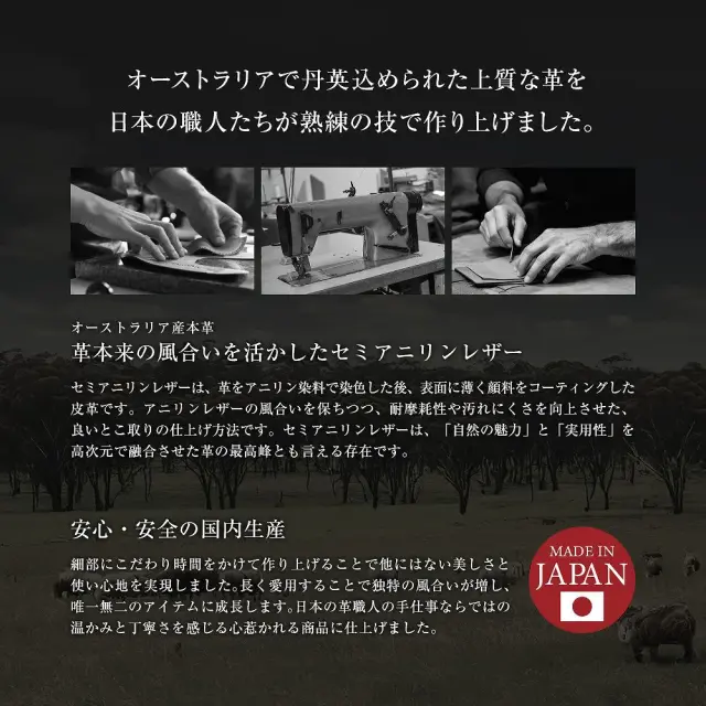 | フランス産原皮(迷彩タイプ)/オーストラリア産原皮(無地タイプ) |