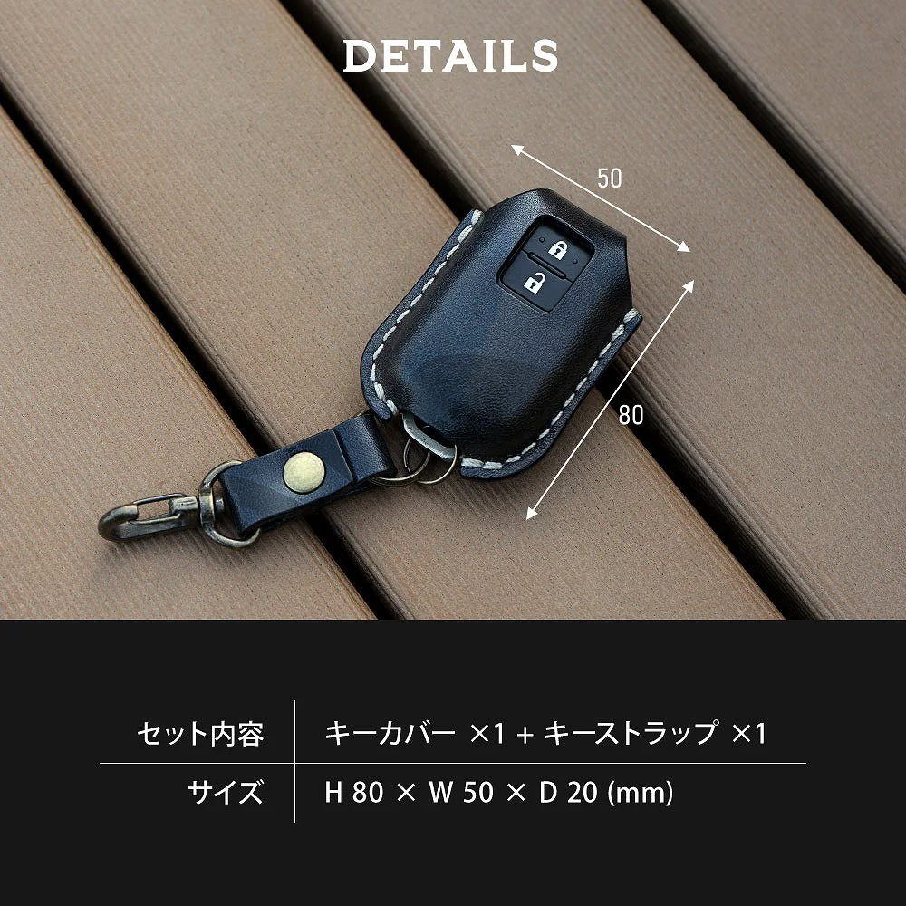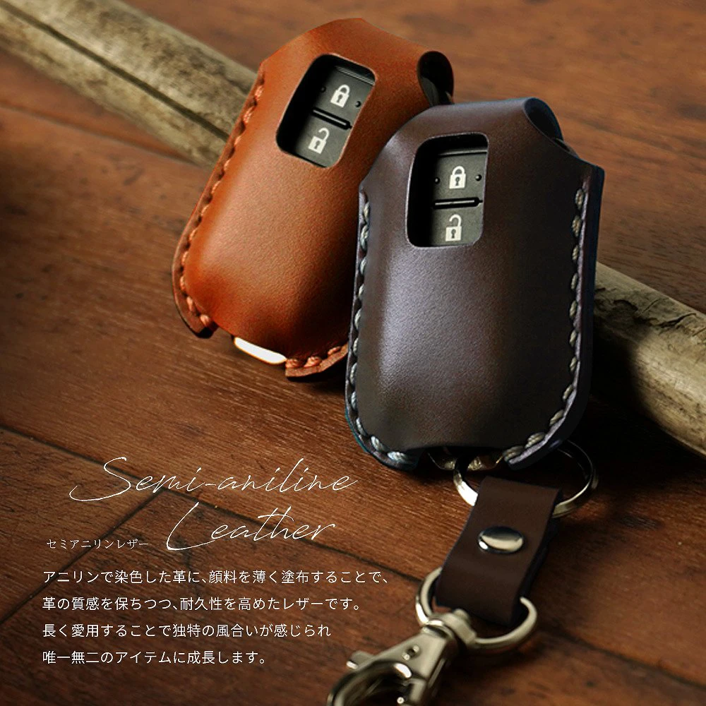 LANGES LEBENスマートキーカバーは、スペーシアのために特別に設計された本革製のアクセサリーです。高品質なレザーを使用し、耐久性と美しさを兼ね備えています。手に馴染む感触と、使い込むほどに味わいが増す風合いが魅力です。リレーアタックには対応していませんが、スタイリッシュなデザインで愛車のキーをしっかりと保護します。