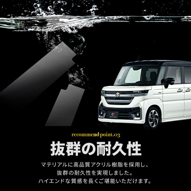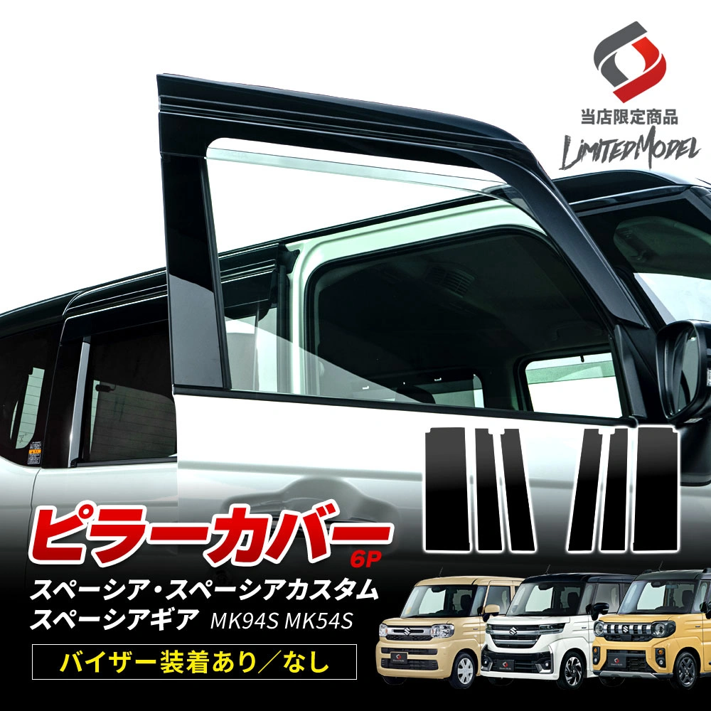 スペーシア、スペーシアカスタム、スペーシアギアのMK94SおよびMK54Sモデルに特化したピラーカバー6pセットは、専用に設計されています。この製品は、車のサイドを傷から守り、外装を美しくドレスアップします。当社オリジナル商品として、耐久性とデザイン性を兼ね備えたピラーカバーは、愛車の外観を一層引き立てます。簡単に取り付けられ、車の個性を際立たせる理想的なカスタムパーツです。