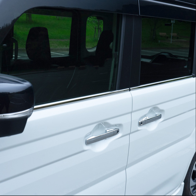 簡単取り付けで愛車を煌びやかにドレスアップ スペーシア スペーシアカスタム MK94S MK54S ウィンドウモール4pです。 [ 材質 ] ステンレス(鏡面加工) [ カラー ] シルバー [ セット内容 ] 4p+マスキングテープ+粘着促進剤+取扱説明書 [ 装着方法 ] 裏面両面テープで簡単取付 ■適合車種