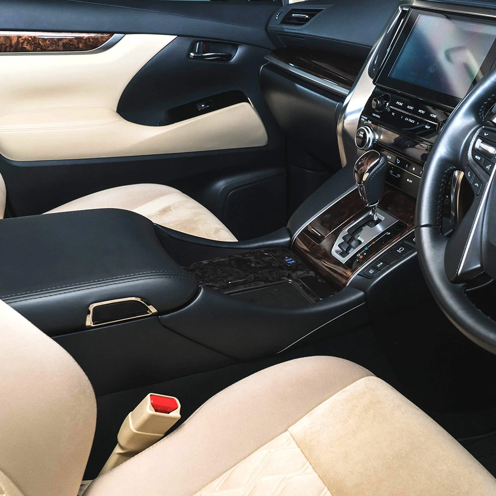 アルファードとヴェルファイア30系専用のコンソールボックスは、車内の快適性と機能性を向上させるために設計されています。高級感あふれる内装パーツとして、アームレスト機能を備え、長時間のドライブでも快適に過ごせます。さらに、ワイヤレス充電機能を搭載しており、スマートフォンの充電も簡単です。収納スペースも充実しており、小物を整理整頓するのに最適です。車内をよりスタイリッシュにカスタムしたい方におすすめのアイテムです。