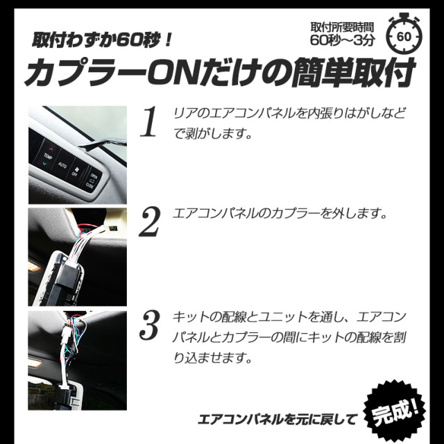 | ※ご購入前に必ず適合を確認して下さい。 ※純正のLEDルーフイルミネーションのない車両には使用できません。 ※取り付け前にテスターで本製品と車両の通電、動作確認を行ってください。 ※必ずドアを閉めた状態でエンジンをおかけください。ドアを開けたままエンジンかけると内部記憶が変更された状態でスタートいたします。 ※5分毎カラーチェンジモード中にエンジンを切り、エンジン再スタートするとカラーが変わります。 ※ROOMボタンでオン/オフできます。商品を取り付けた際に点灯しない場合はROOMボタンをご確認ください。 ※連続してパターンを切り替えることはできません。パターン切り替え時は6秒以上間隔をあけてからCOLORボタン下部を5秒以上長押ししてください。 ※自己責任にてお取り付け、ご使用ください。 ※2021年5月以降の一部改良車両のモデルはメモリー機能が正常に作動しない場合がございます。 ※いかなる場合も取り付けや施工に関する費用は弊社では負担いたしません。 ※本製品を使用したことによる直接、間接的に生じた事故、損害、破損についての責任は弊社は一切負いません。 ※モニターの環境により商品の色合いや素材感などが異なる場合がございます。 ※商品は予告なく仕様変更もしくは販売終了している場合がございますのであらかじめご了承ください。 ※国外への配送はEMSでの発送です。ご注文後、弊社よりメールにて別途送料などをお知らせいたします。 ※2021年3月仕様変更いたしました。ユニットが小さくなってリニューアル! | |
