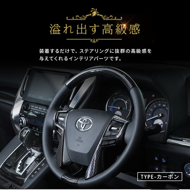 アルファード/ヴェルファイア30系専用のステアリングパネルです。 ステアリングをグレードアップしたいあなたにおすすめのアイテム! ピアノブラック、木目調ブラック、カーボンの3タイプからお選びいただけます。