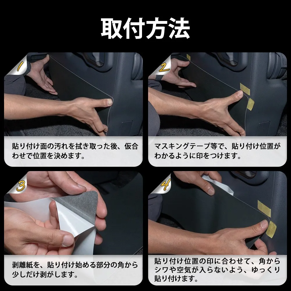 ※装着時に伸ばして貼ることにより、シワができずに張ることができます。 真っ直ぐに貼らなかった場合、シワができる可能性がございますので、くれぐれもご注意ください。 ※時間経過に伴い、シワが消える可能性もございます。ただし、貼り方に伴い変化することもありますため、ご了承ください。 ※製造工程上、裏面のテープのはみ出ている箇所がある場合がございます。ご使用前に、ハサミなどで切り取ってからご使用ください。 ※貼り付け時は位置決めにマスキングテープ等を使って貼り付けを行ってください。 ※十分に脱脂や汚れを拭き取ってから貼り付けてください。 ※両面テープを剥がされますと、返品不可とさせていただいております。 ※商品特性上、商品の端等が浮くことがございます。その際は両面テープ等で補強をお願いいたします。 ※グレード・追加オプション・エアロパーツ・社外品等を装着している車によっては形状が合わない場合があります。お乗りのお車と商品画像を見比べて合うことをご確認の上、ご購入をお願いいたします。 ※車両適合情報は本製品発売時のものになります。その後の車両側の仕様変更や改修によっては正常に動作/適合しない場合がありますのでご注意ください。 ※取り付けの際の工賃等の請求は一切受け付けません。 ※お取り付けは、自己責任にて、作業を行って下さい。お客様責任による破損での対応は受付できません。 ※必ずフィッティング確認を行ってから取り付けてください。 ※社外品につき小傷等がある場合がございますが、使用に支障がない限り交換、返品はいたしません。 ※本製品を使用したことによる直接、間接的に生じた事故、損害、破損についての責任は弊社は一切負いません。 ※モニターの環境により商品の色合いや素材感などが異なる場合がございます。 ※商品は予告なく仕様変更もしくは販売終了している場合がございますのであらかじめご了承ください。 ※国外への配送はEMSでの発送です。ご注文後、弊社よりメールにて別途送料などをお知らせいたします。 |