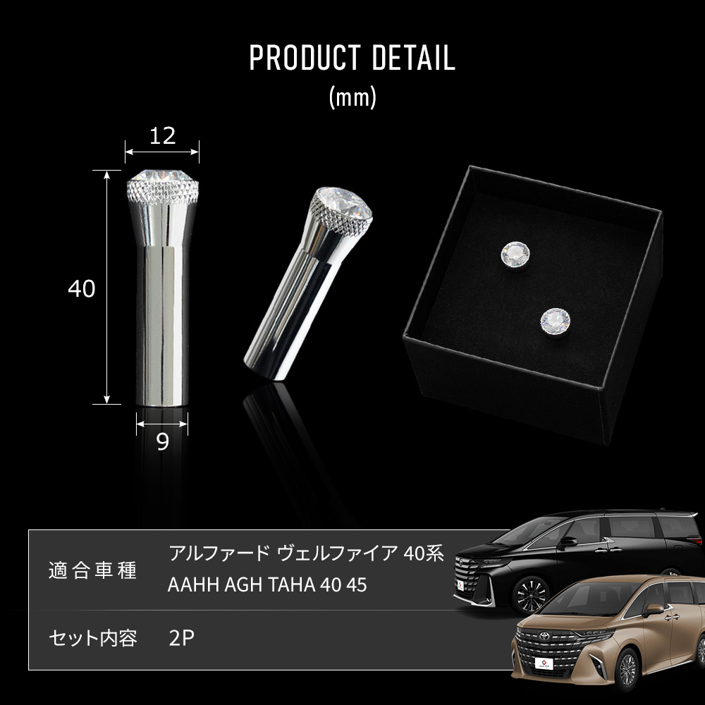 アルファード ヴェルファイア 40系のフロントドアロックピンカバーは、簡単に取り付けられる上品なアクセサリーです。カットが煌めくピンヘッドと亜鉛合金の重厚なピンボディーが、光と重厚感の美しい輝きを演出します。