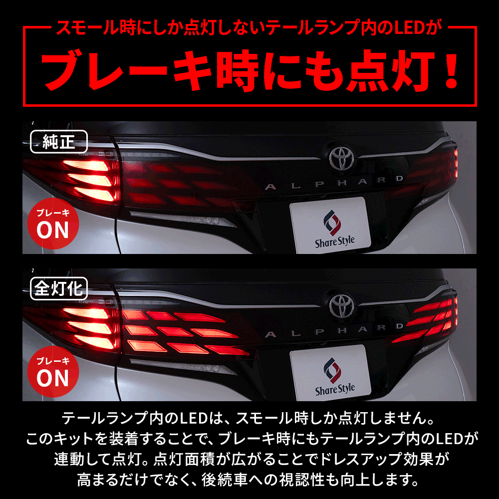 | 製品名: | アルファード 40系 Xグレード 専用 ブレーキ全灯化キット シェアスタイル 4灯化 テールランプ LED カプラーオン 車検対応 |