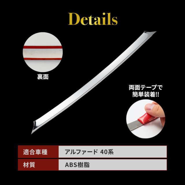 簡単取り付けでドレスアップでフロントに輝きを! アルファード 40系 フロントリップスポイラー (当社オリジナル商品)です。 [ 材質 ] ABS樹脂 [ カラー ] シルバー [ セット内容 ] 1p+マスキングテープ+粘着促進剤+取扱説明書 [ 装着方法 ] 裏面強力テープで簡単装着 ■適合車種 アルファード 40系 AAHH AGH 40 45 R5.6~