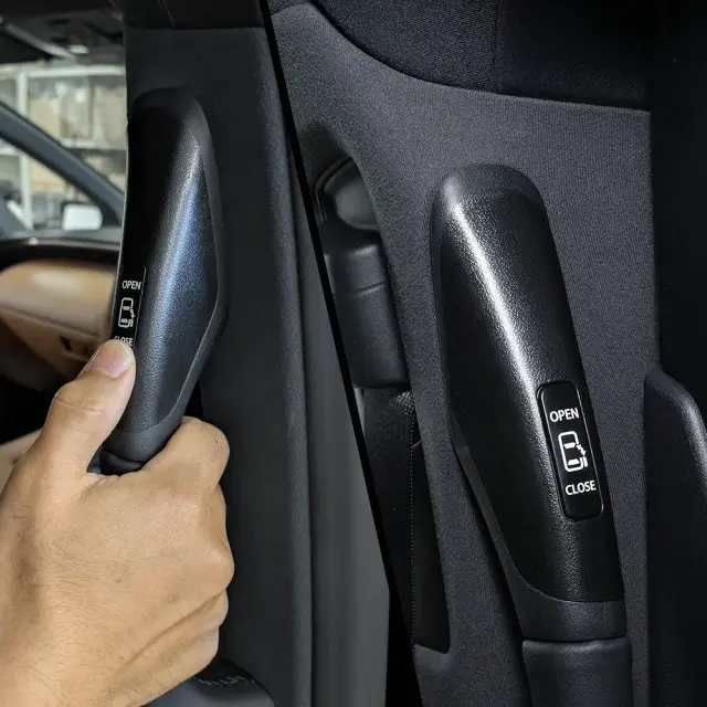 アルファード ヴェルファイア40系専用のワンタッチスライドオープンキットです。アシストグリップに開閉スイッチを追加し、天井に手を伸ばさずパワースライドドアを操作可能になります。後部座席の利便性を高め、快適な車内環境を実現します。カプラーオンの簡単な装着で、手軽にカスタムが楽しめます。