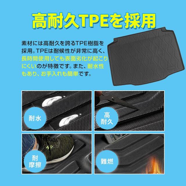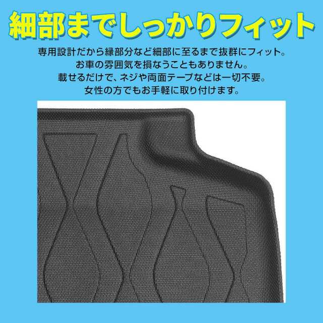 お手入れ簡単!汚れ防止に活躍!カローラクロス E-four 専用3Dラゲッジマットです。 [ 材質 ] TPE樹脂 [ カラー ] ブラック [ セット内容 ] 1P [ 装着方法 ] 置くだけ簡単装着 ■適合車種 カローラクロス E-four ZVG11 15 ZSG10 R3.9? ※2WD車不適合 ※アクセサリーコンセント付属車に適合