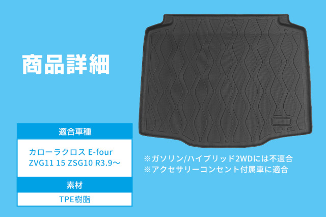 | 製品名: | カローラクロス E-four 専用3Dラゲッジマット |