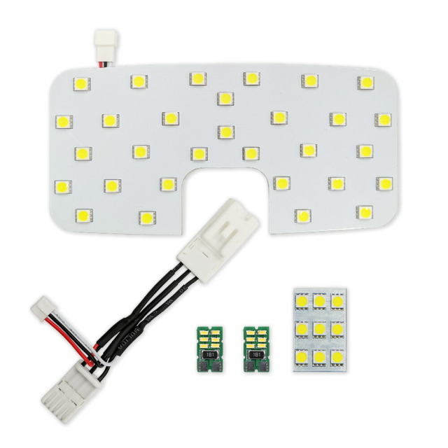 | ≪フロントのみ≫ フロントランプ1p ≪リアラゲッジバニティのみ≫ リアセンターランプ1p、専用配線、バニティランプ2p、ラゲッジランプ1p ≪フルセット≫ フロントランプ1p、リアセンターランプ1p、専用配線、バニティランプ2p、ラゲッジランプ1p、パッケージ、内張りはがし |