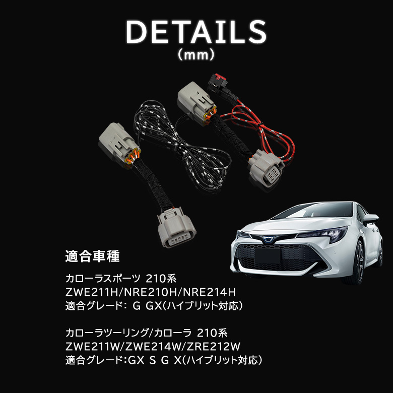 | カローラスポーツ 210系 ZWE211H/NRE210H/NRE214H 適合グレード: G GX(ハイブリット対応) カローラツーリング/カローラ210系 ZWE211W/ZWE214W/ZRE212W 適合グレード:GX S G X(ハイブリット対応) |