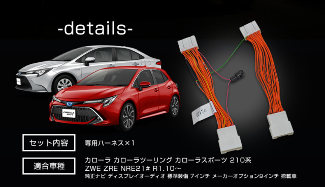 カローラ カローラツーリング カローラスポーツ 210系 純正ナビ ナビキャンセラー 商品説明:簡単取付で走行中のTV視聴やナビ操作が可能 専用設計:純正ナビ ディスプレイオーディオ 標準装備 7インチ メーカーオプション9インチ 搭載車用 セット内容:1p+取扱説明書 取付方法:カプラーオン ■適合車種:カローラ カローラツーリング カローラスポーツ 210系 ZWE ZRE NRE21# R1.10~