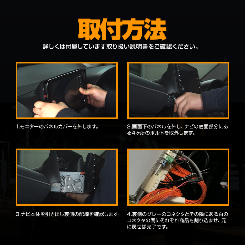 | ナビ裏の配線に割り込ませるだけの簡単装着 |