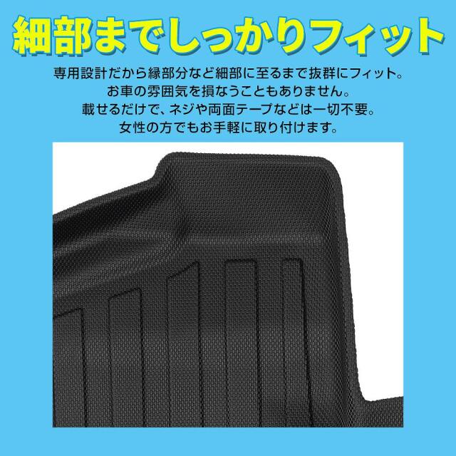 お手入れ簡単!汚れ防止に活躍!クラウン クロスオーバー 専用3D ラゲッジマットです。 [ 材質 ] TPE樹脂 [ カラー ] ブラック [ セット内容 ] 1P [ 装着方法 ] 置くだけ簡単装着 ■適合車種 トヨタ クラウン クロスオーバー TZSH35 AZSH35 R4.9~※スペアタイヤ装着車不適合