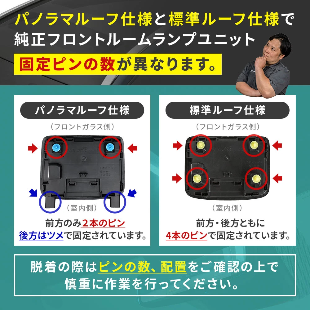 しかし、商品取付け動画が対応車種ではなく汎用的に使いまわされています クラウンエステートのフロントのルームランプの取付け動画はクロスオーバーのものでルームランプの取外し方が違いました クロスオーバーは爪が4本ですが、エステートは2本で前側は差込み引っ掛かける様な感じでした 動画の通り前側から外していたのですが爪が取れるわけもなく内部ご結構傷つきました 残念な点です 後席のルームランプも少し取付け方が動画とは違いました |