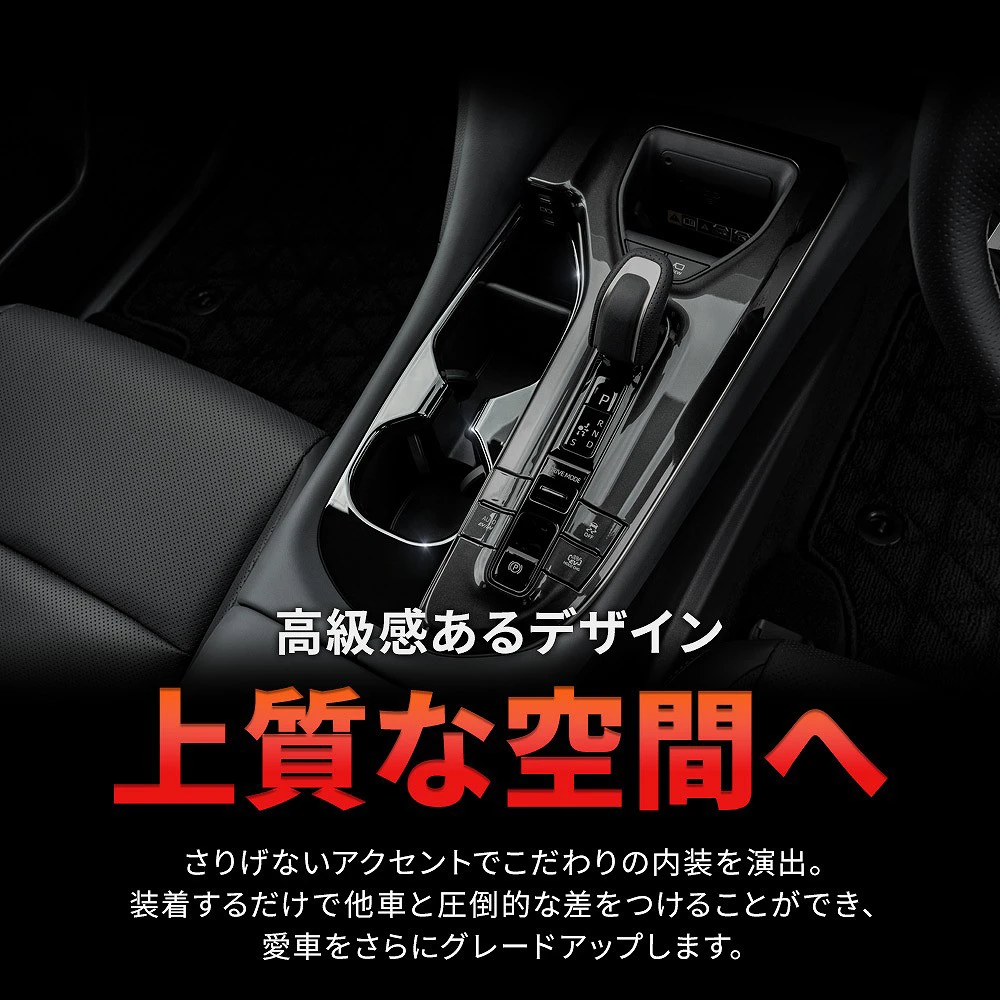 クラウンエステートのインテリアを格上げする「ドリンクホルダーカバー」は、ピアノブラックの美しい仕上げが特徴です。ABS素材を使用し、傷や汚れからしっかりと保護します。特にAZSH39WやAZSH38Wモデルに適合し、車内の雰囲気を一新します。取り付けも簡単で、車内のドレスアップに最適なアイテムです。高級感を演出しつつ、実用性も兼ね備えたこのカバーで、快適なドライブをお楽しみください。