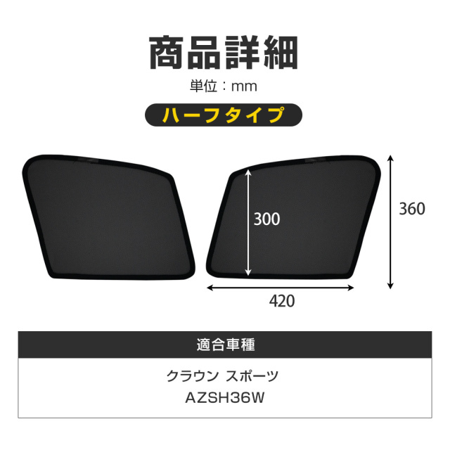 | 製品名: | クラウン スポーツ 専用 メッシュシェード ハーフタイプ 2p |